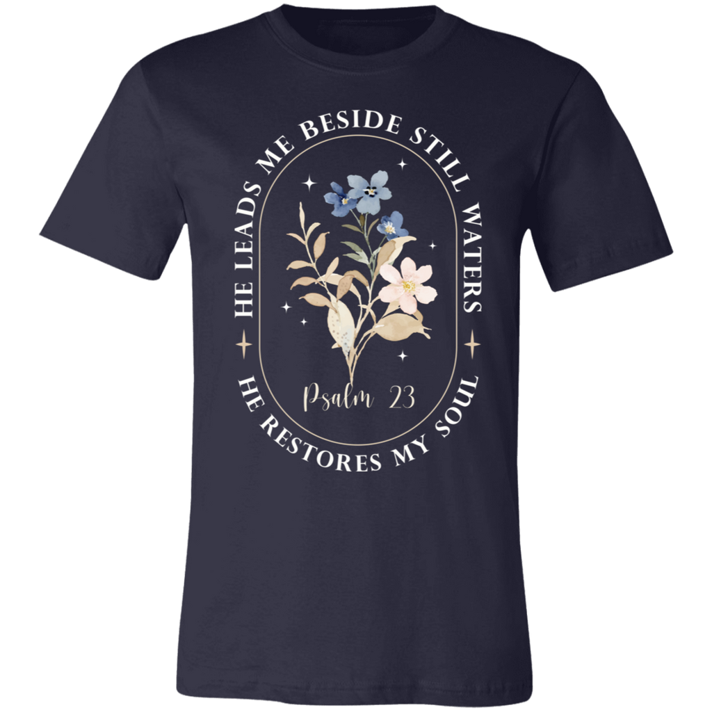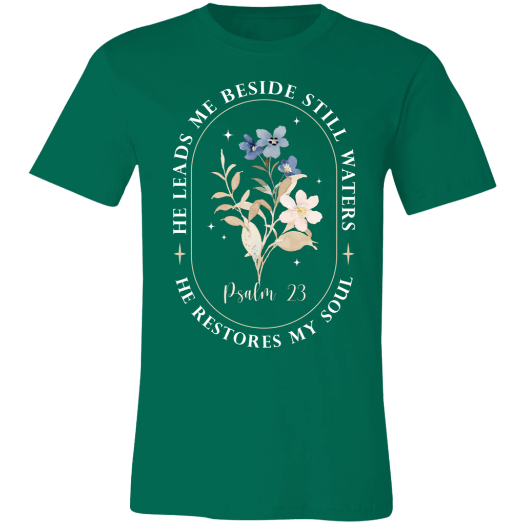 S02370 - Christian - He leads me beside still waters 3001C Bella + Canvas Unisex Jersey Short-Sleeve T-Shirt