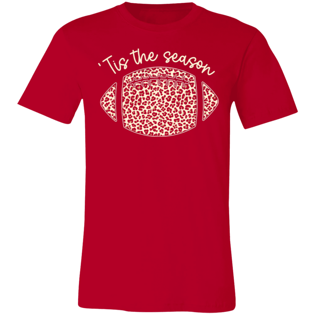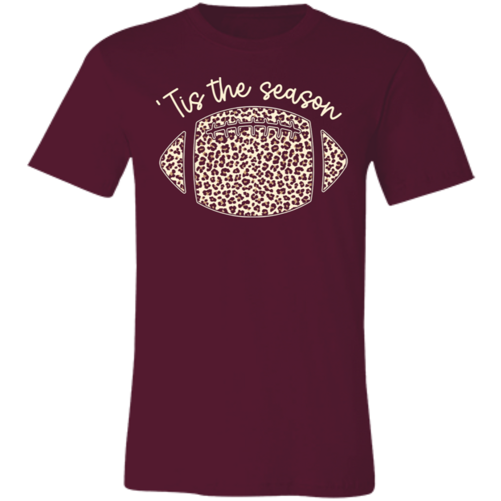 S04307 - Tis the season - Football Leopard 3001C Bella + Canvas Unisex Jersey Short-Sleeve T-Shirt
