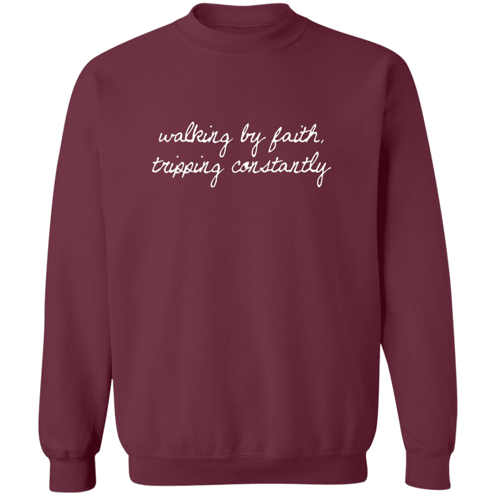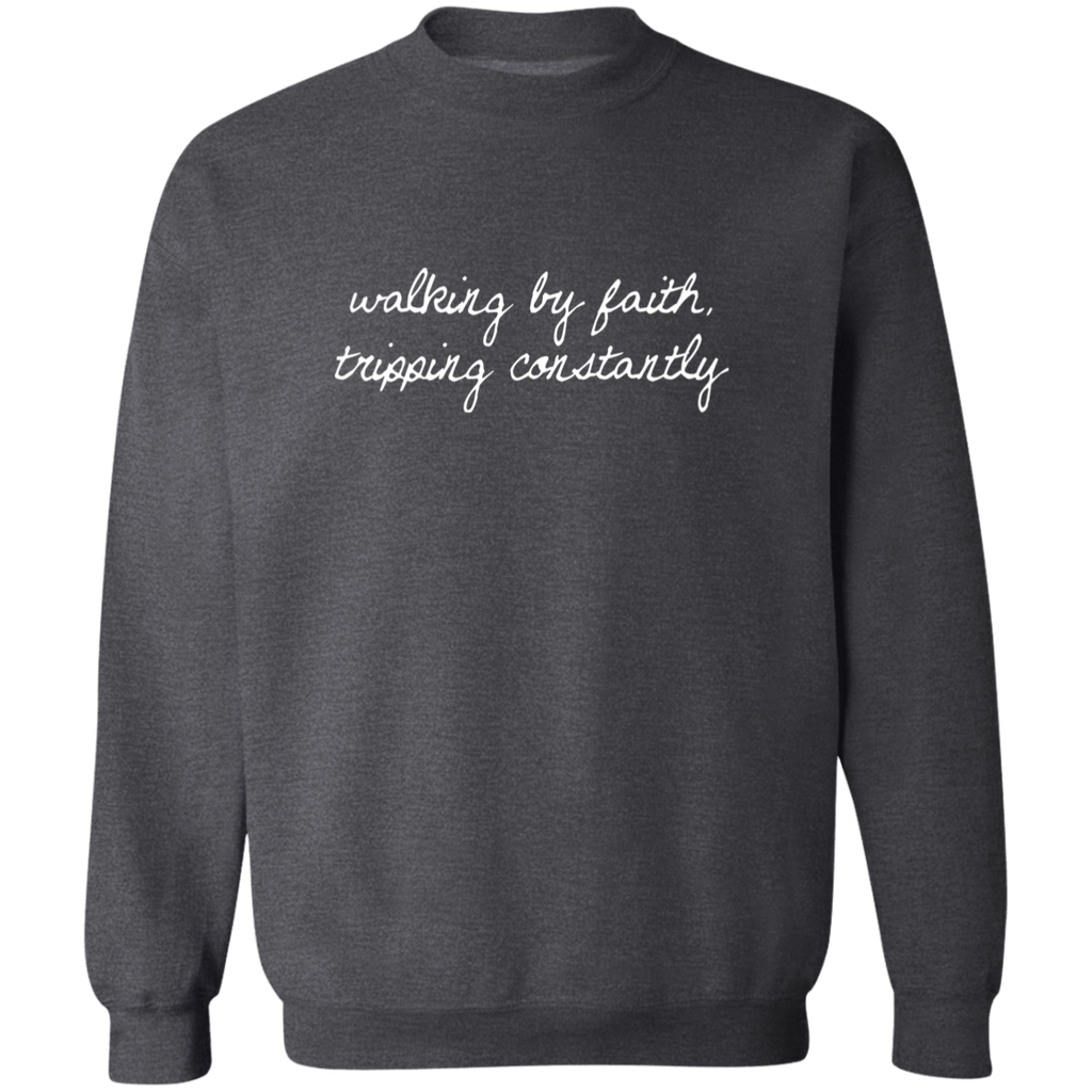 S04446 - Walking By Faith - White DS G180 Gildan Crewneck Pullover Sweatshirt