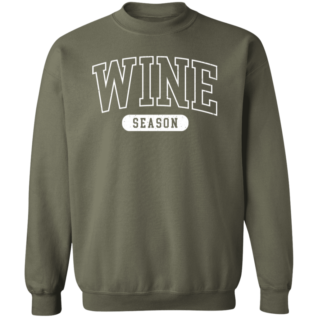 S047124 - Wine Season - White DS G180 Gildan Crewneck Pullover Sweatshirt
