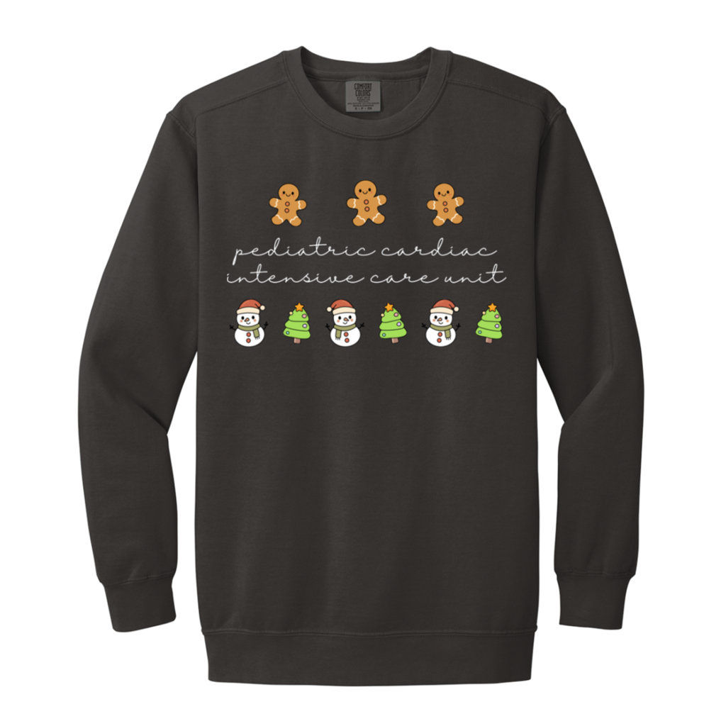S04827 - PCICU Pediatric Cardiac ICU - White DS 1566 Garment-Dyed Adult Crewneck Sweatshirt